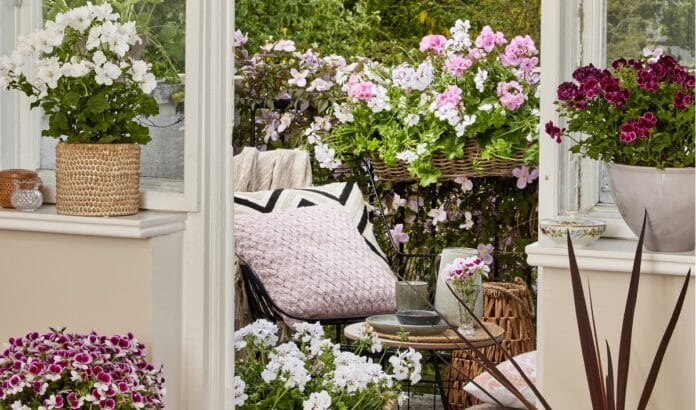 Consejo: Alternar geranios trepadores y erguidos en una maceta da a las plantas más espacio para desarrollarse libremente.