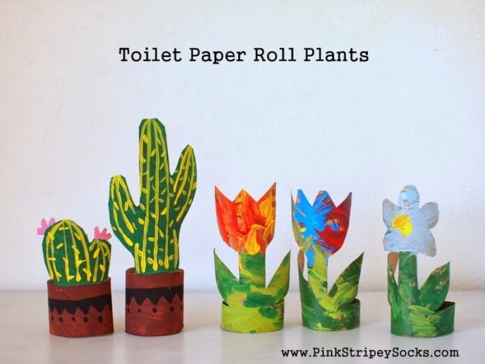 Si buscas decoración infantil, detalles para niños o cualquier complemento para tus hijos hoy propongo reciclar esos tubos de cartón que tenemos en el baño o en la cocina. Estos tubos de cartón que vemos han sido convertidos o transformados en simpáticas flores y plantas, para decorar algunos espacios de los más pequeños de la casa. Con flores divertidas y simpáticas plantas de cartón, además de decorar y añadir un toque de alegría… estaremos enseñando a reciclar a nuestros hijos.